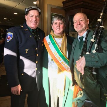 Left to Right: Emerald Society President Peter Van Slyck with Joan Moore Grand Marshal of the Pearl River Parade and her husband Dermot retired NYPD